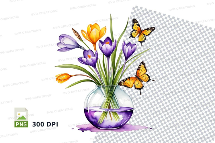 Similar Design Products to Vase with spring flowers and butterflies clipart png