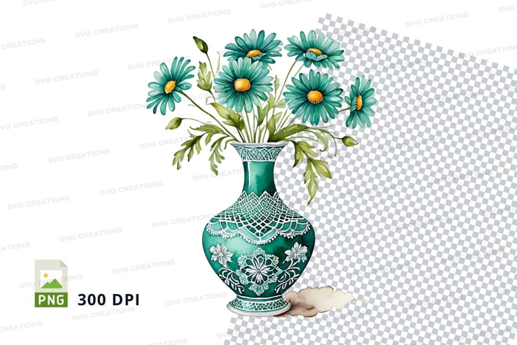 Similar Design Products to Clipart png of blue floral vase with daisies