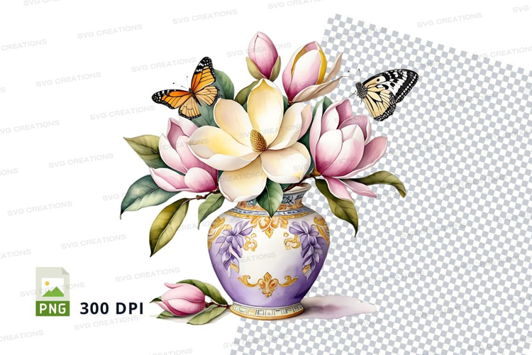 Floral vase with butterflies clipart png example image 1