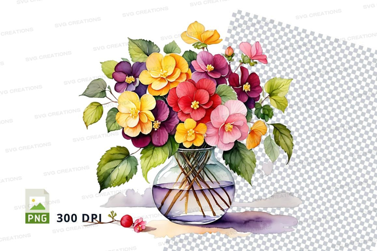Watercolor flower bouquet in vase clipart png example image 1
