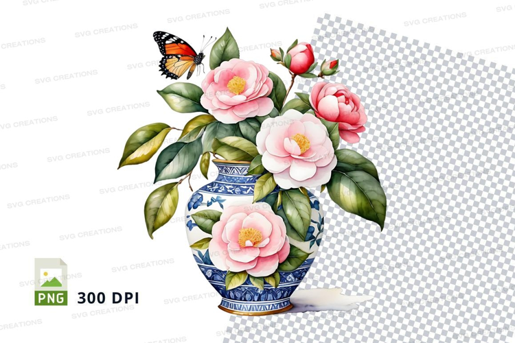 Floral vase with butterflies clipart png example image 1