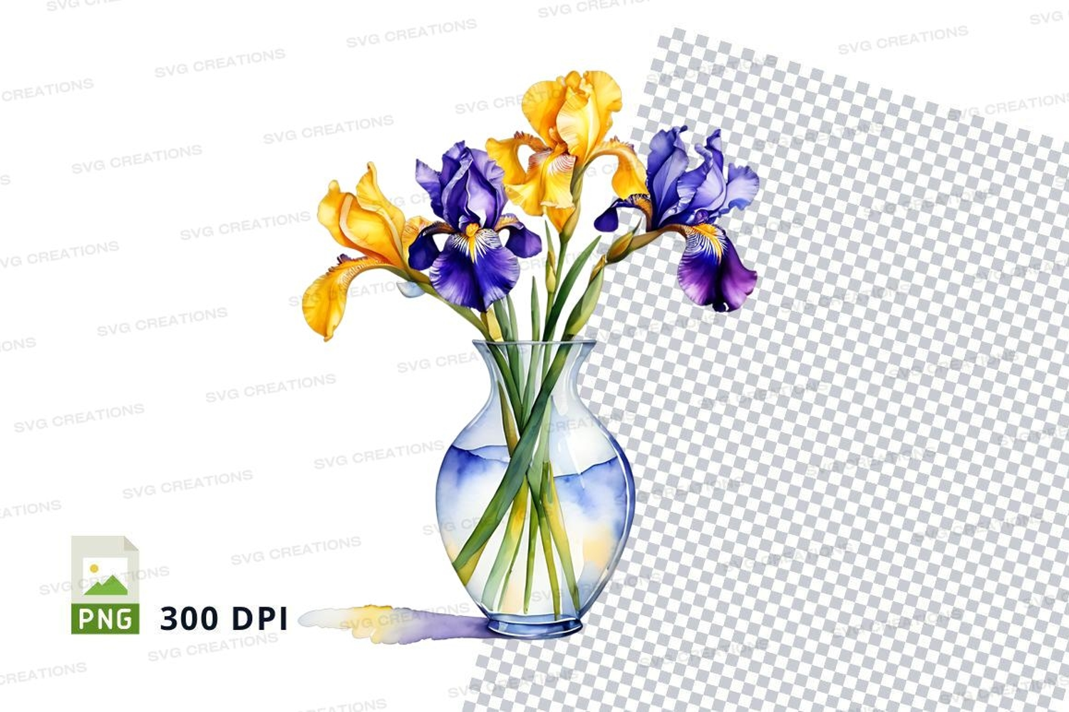 Flowers Clipart Bouquet Png Transparent Background Vase 300 Dpi Clear Glass Iris Flowers