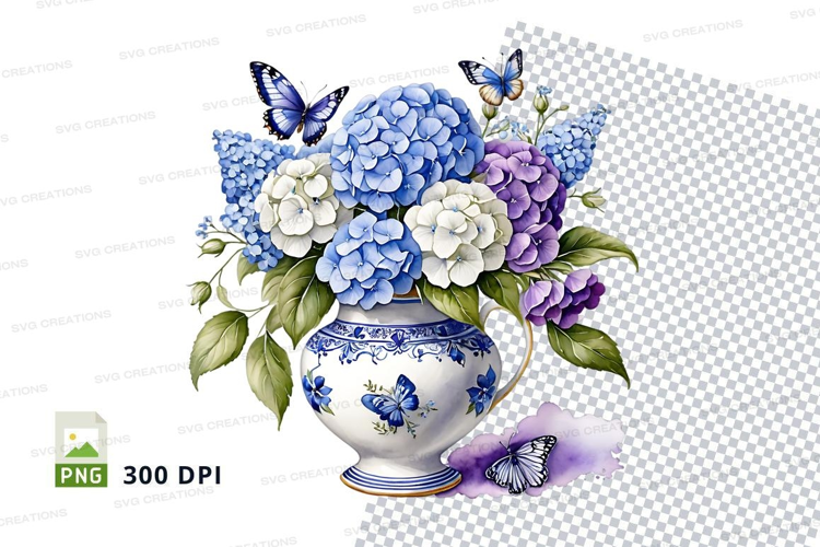 Floral Flowers Clipart Blue Png White Vase Butterflies 300 Dpi High-resolution
