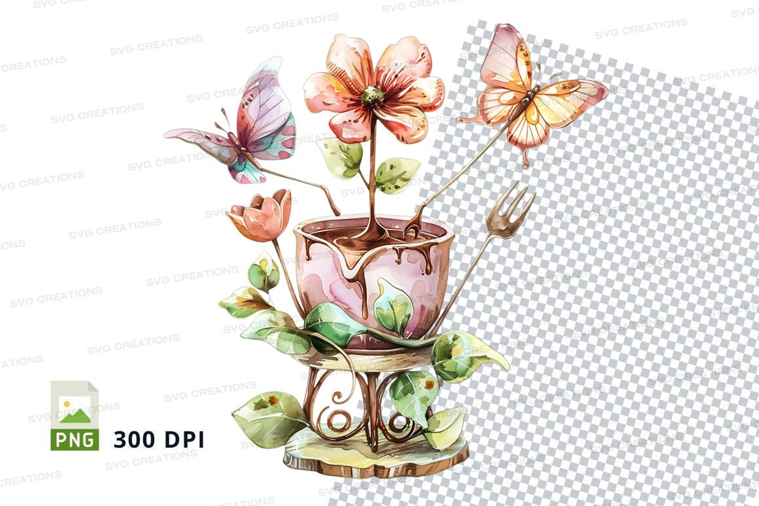 Decorative Watercolor Whimsical Clipart Png Butterflies Flower Pot High-resolution