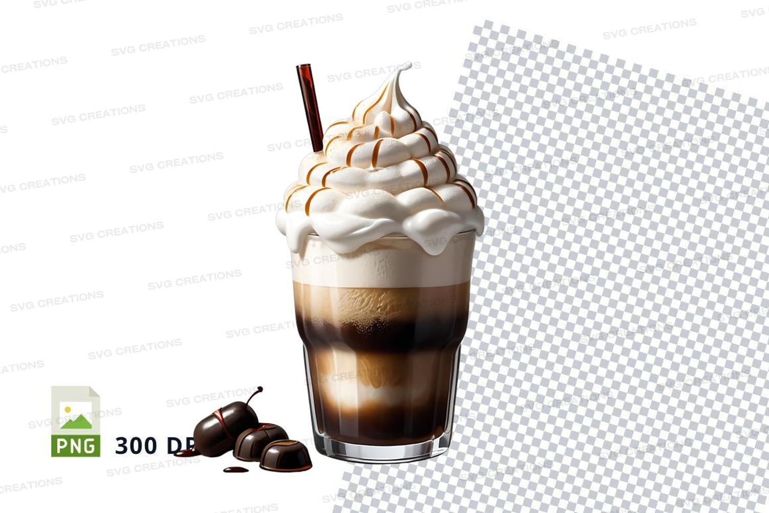 Similar Design Products to Iced coffee mockup with whipped cream and chocolate topping