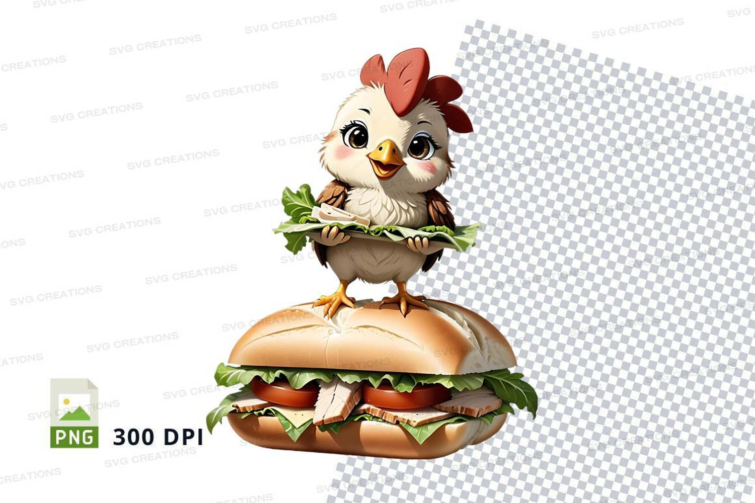 Similar Design Products to Cartoon chicken holding sandwich clipart png