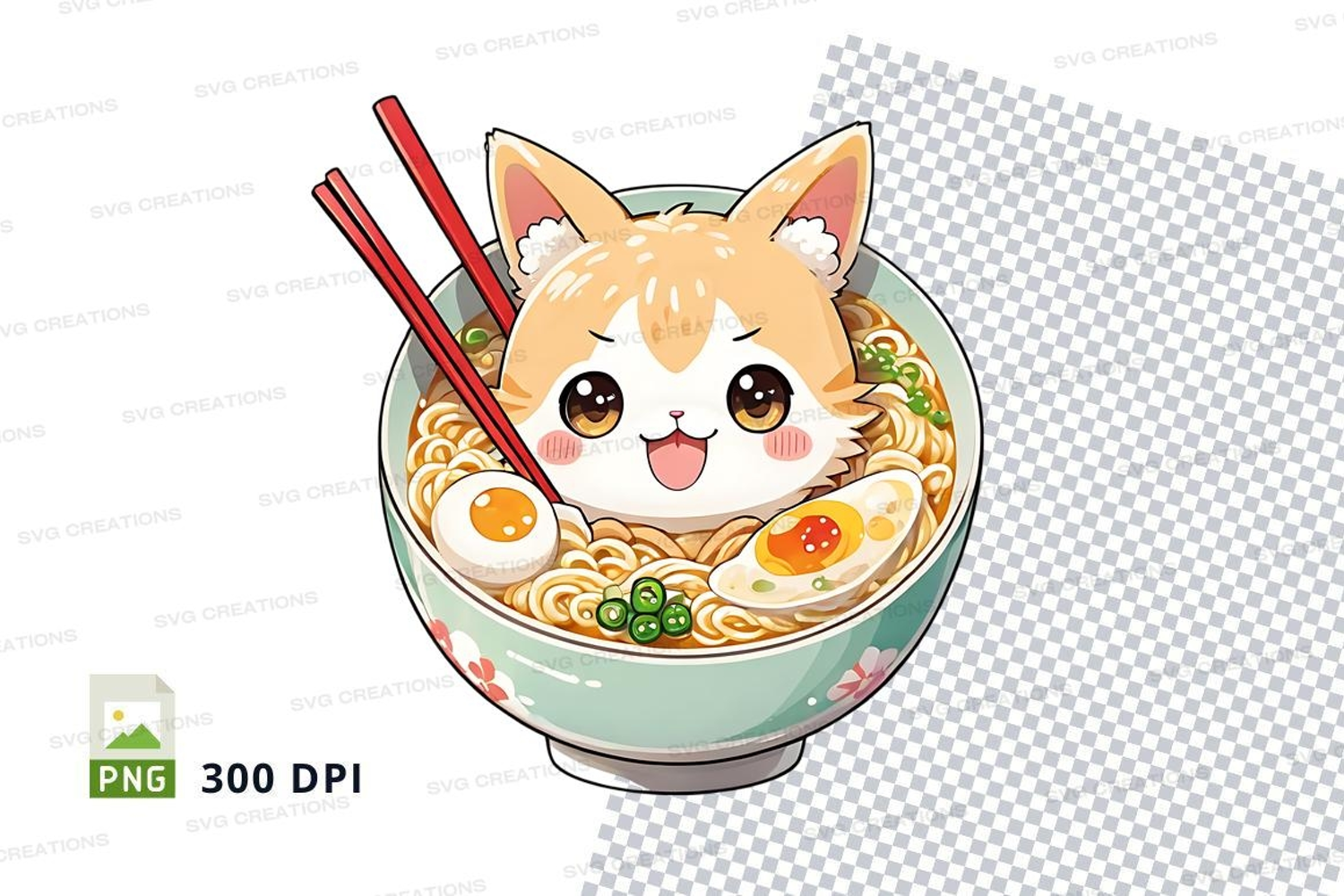 Similar Design Products to Cartoon cat in ramen bowl clipart png