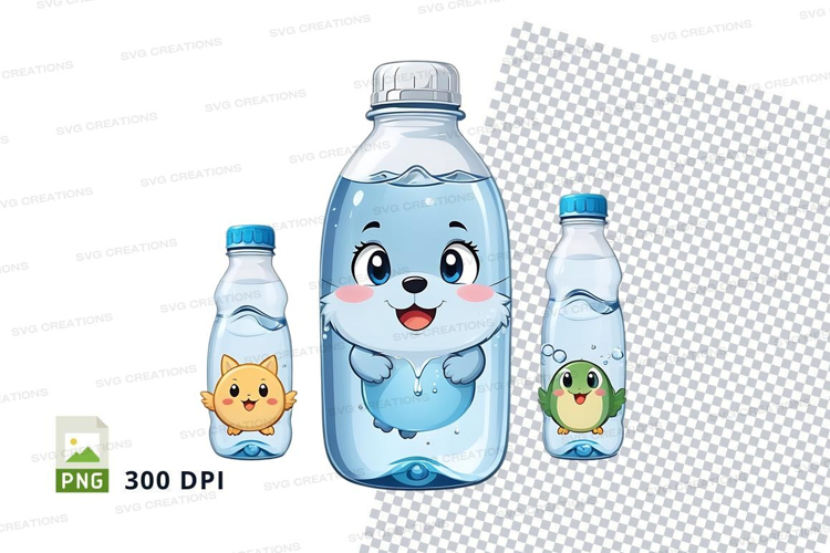 Cartoon Mockup Seal Bird Cat Bottle Water Bottle Character Design