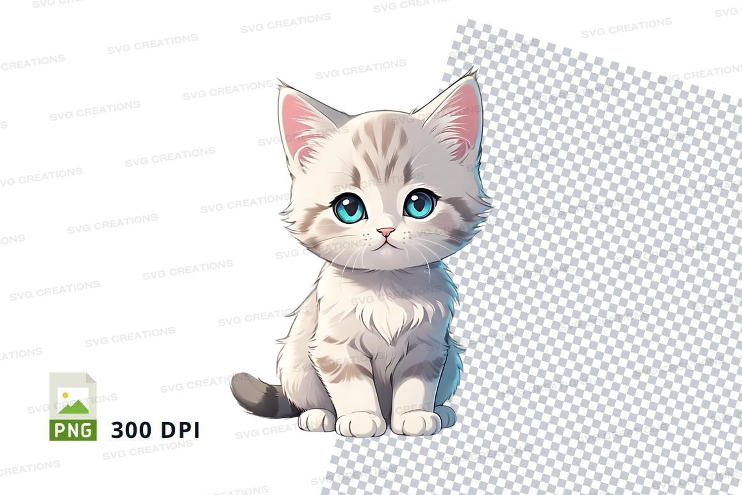 Cartoon Cute Clipart Png Cat Grey Kitten Vase 300 Dpi Blue Eyes