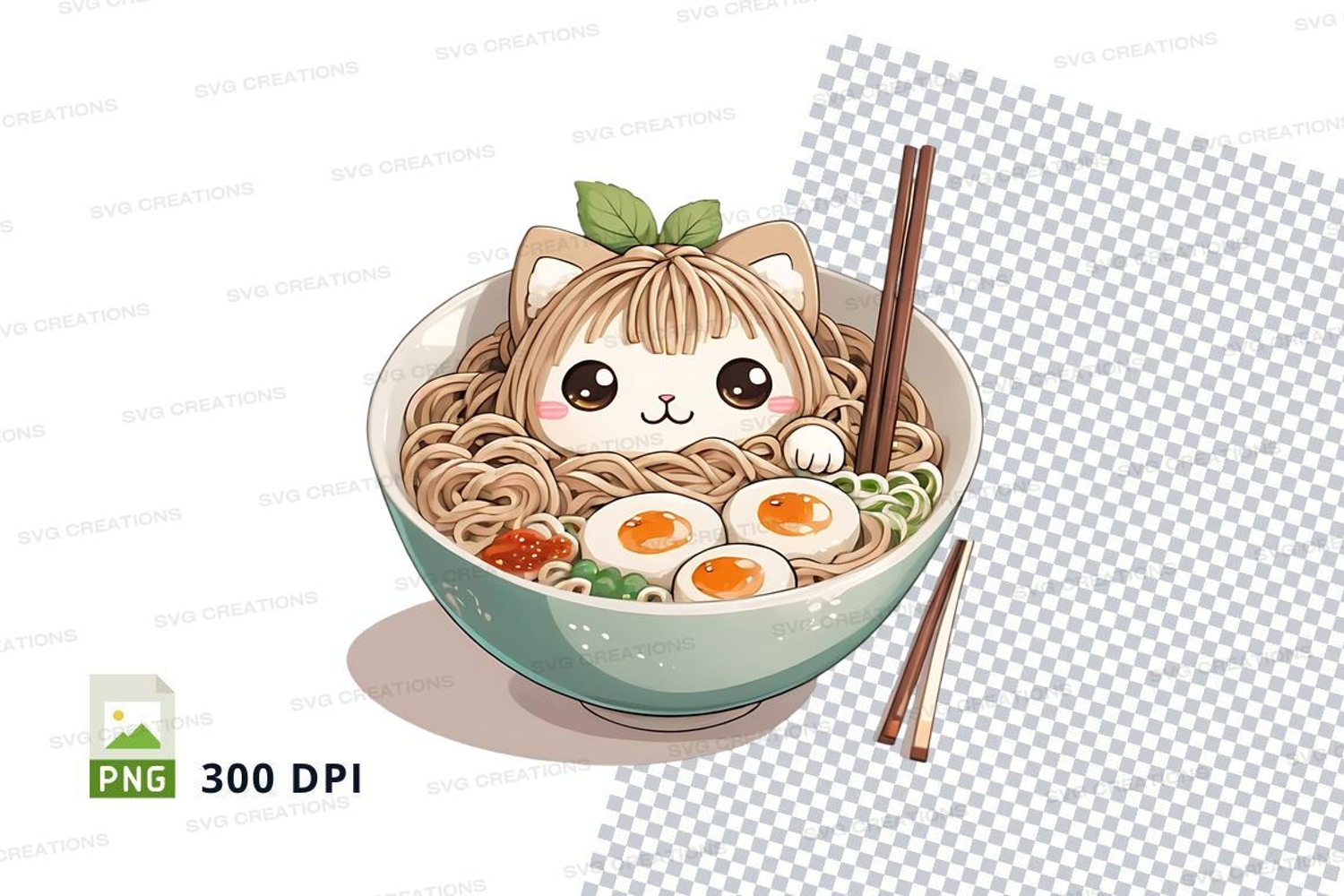 Illustration Food Cute Clipart Cat Bowl Chopsticks Noodles Ramen