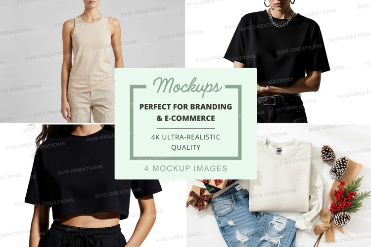 Holiday Black T-shirt Mockup Apparel Decoration Beige White Sweater Crop Top