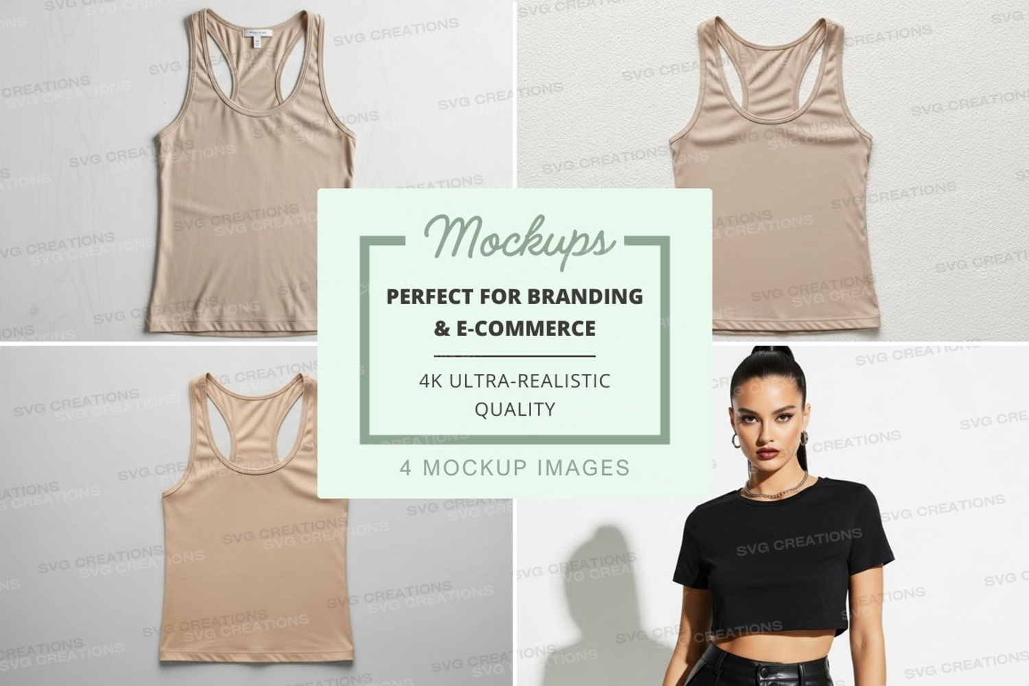 Black Mockup Model Beige Tank Top Racerback Crop Top