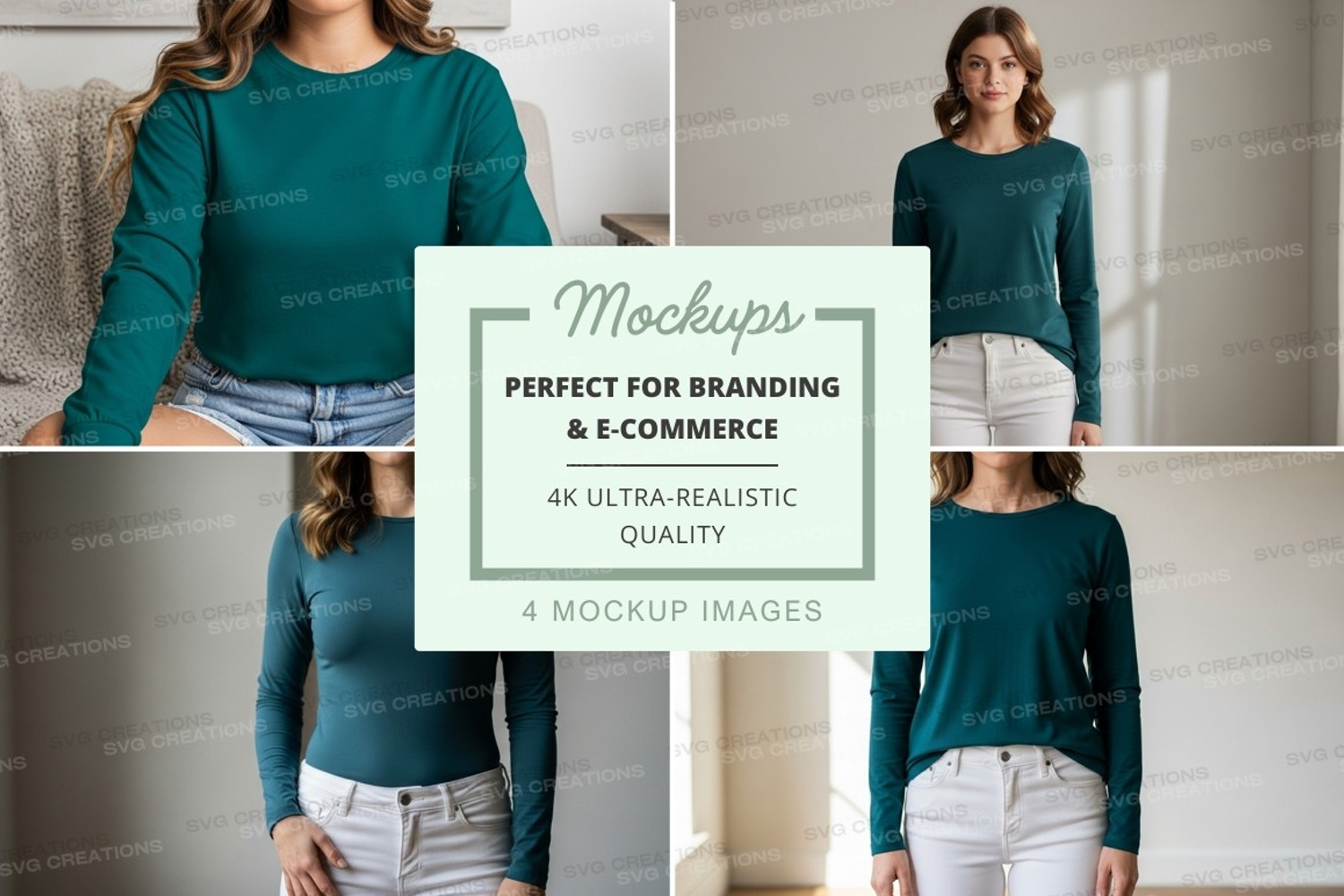 Similar Design Products to Teal long sleeve t-shirt mockup on model