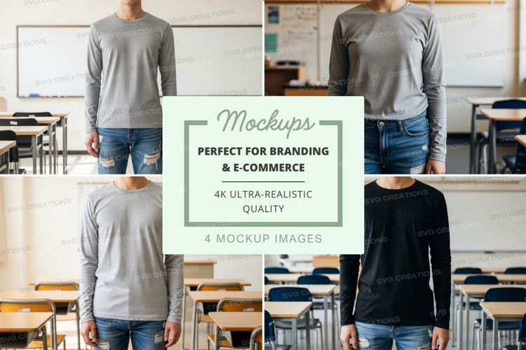 Similar Design Products to Long sleeve t-shirt mockup in classroom setting