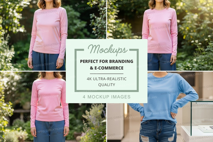 T-shirt Pink Mockup Apparel Outdoor Model Blue Long Sleeve