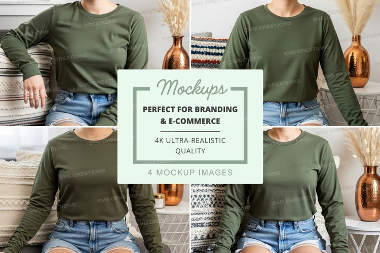 Long sleeve t-shirt mockup in olive green