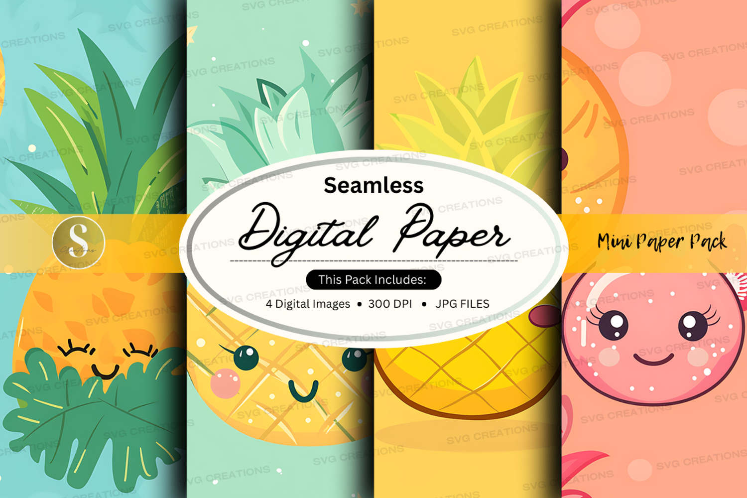 Digital Paper Design Elements Digital Scrapbooking Pastel Background Cute Design Seamless Paper Pineapple Pattern
