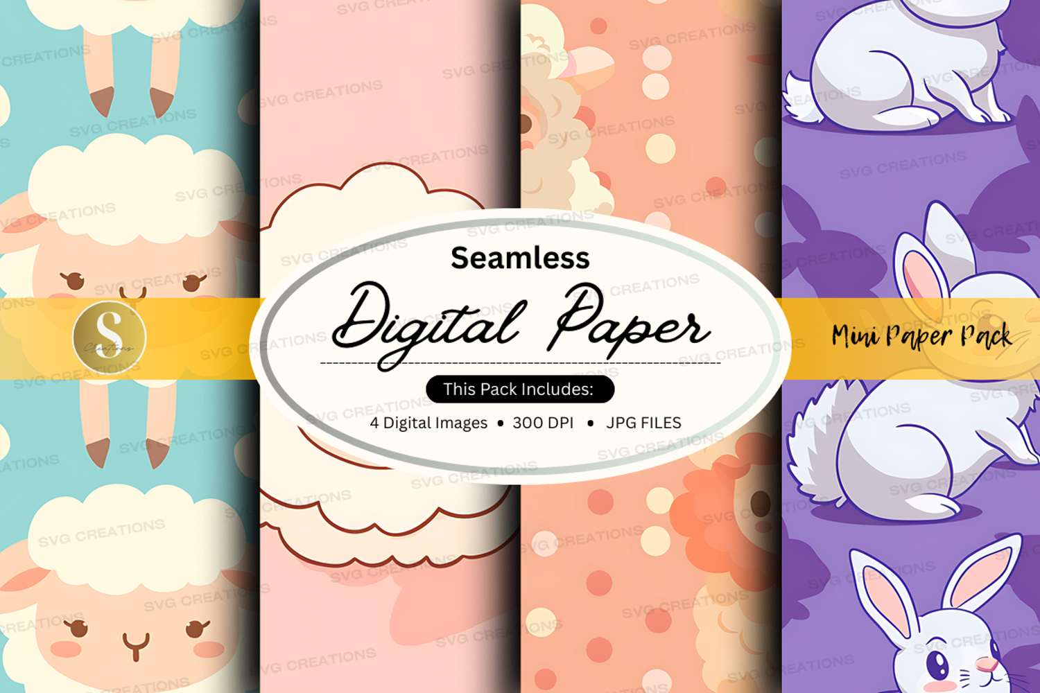 Digital Paper Rabbit Sheep 300 Dpi Pastel Colors Animal Illustrations Seamless Paper Jpeg Files