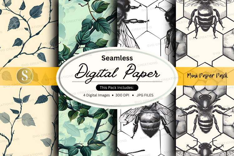 Similar Design Products to Seamless digital paper pack with bee and leaf patterns