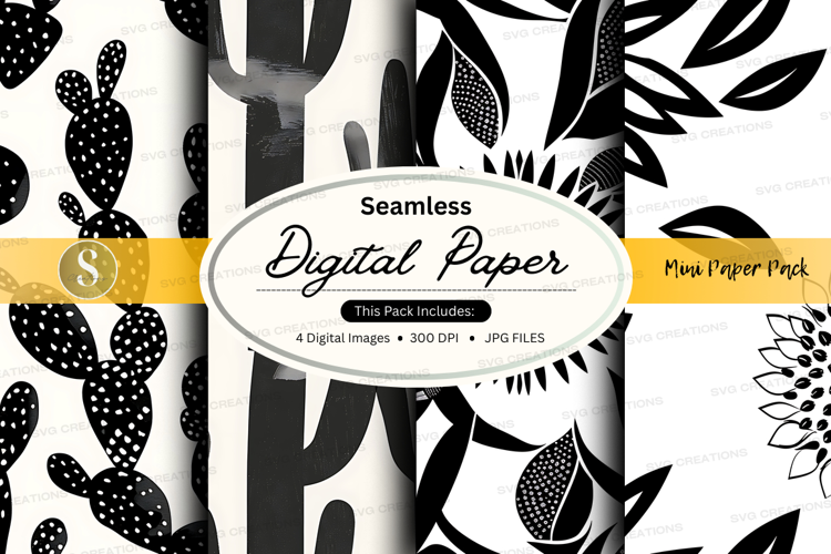 Leaf Black And White Digital Paper Seamless Pattern Cactus 300 Dpi Jpg Files Pattern Pack