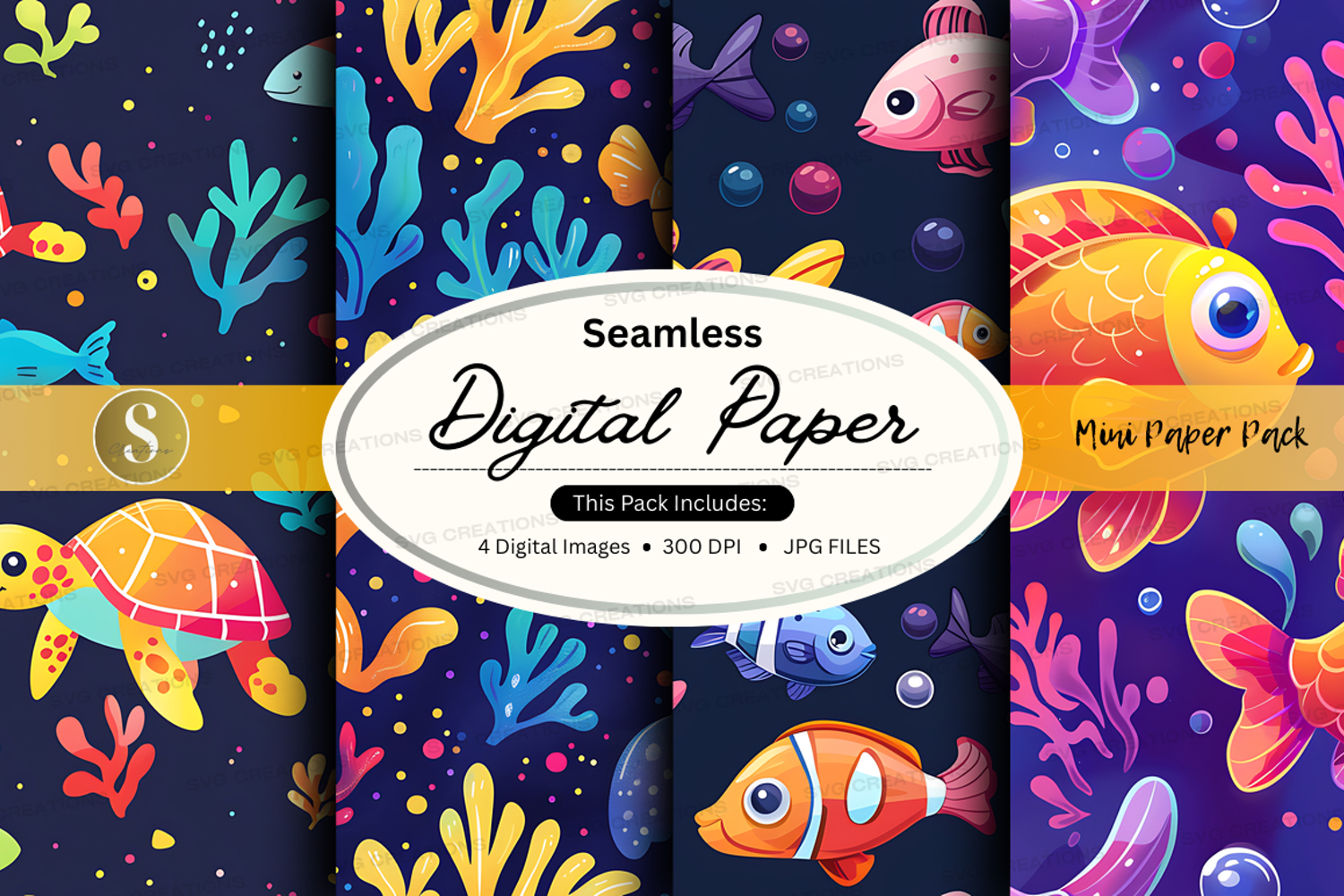 Ocean Fish Pattern Digital Paper Seamless Coral Jpeg 300 Dpi Sea Creatures