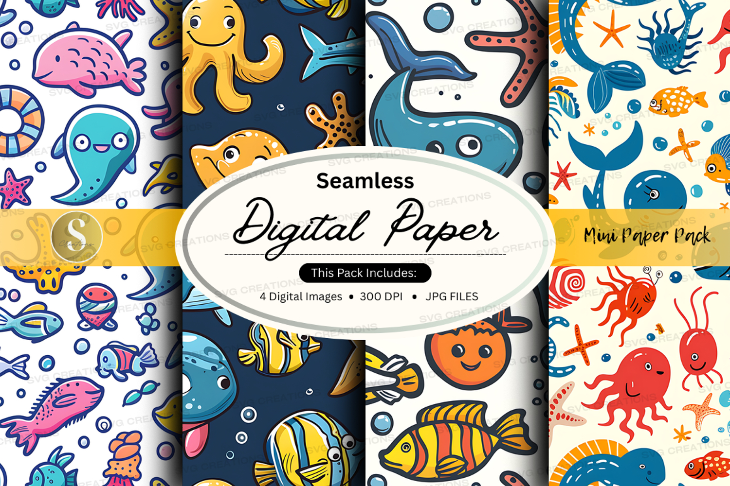Digital Paper Scrapbooking Paper 300 Dpi Craft Paper Digital Images Jpg Files Sea Creatures Seamless Paper Underwater Patterns Ocean Theme