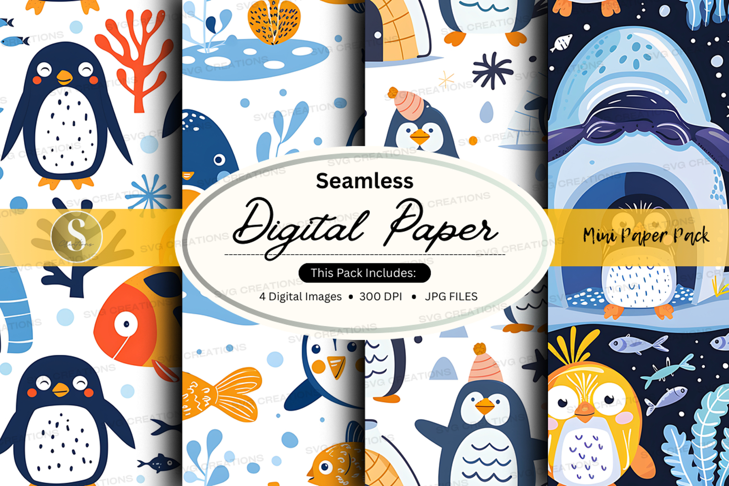 Similar Design Products to Penguin and fish seamless digital paper pack