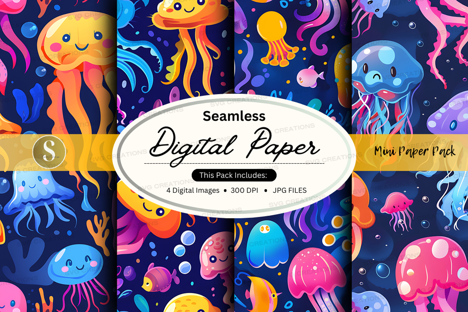 Seamless digital paper with colorful jellyfish pattern example image 1