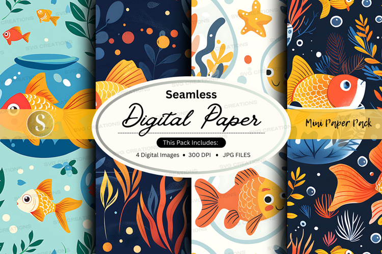 Digital Paper Seamless Patterns 300 Dpi Fish Patterns Marine Patterns Jpeg Files