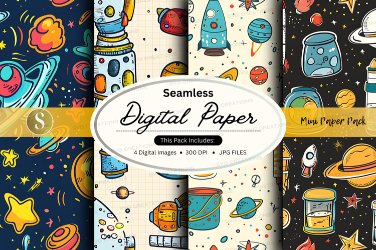 Pattern Digital Paper Background Seamless Space Accessories Stars Galaxy Rockets Planets
