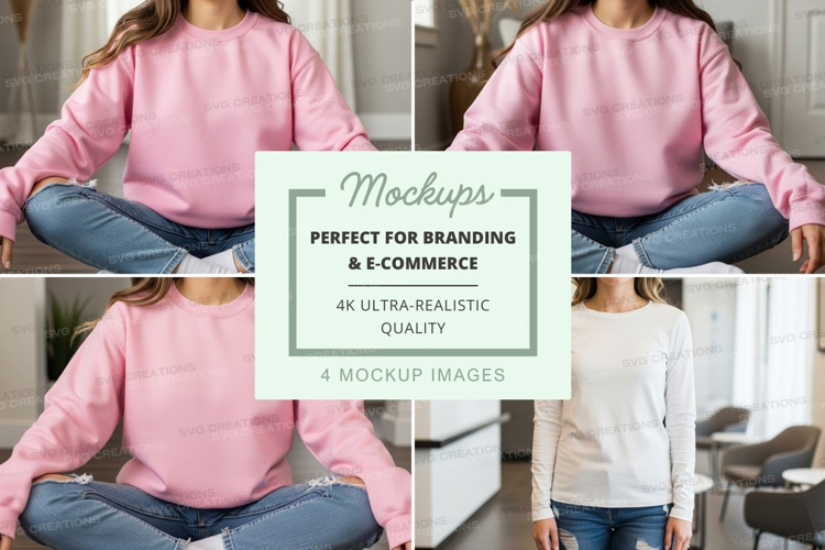 T-shirt Pink Casual Women Mockup White Indoor Long Sleeve Seated
