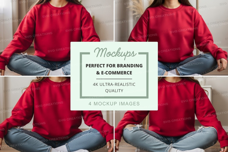 Mockup Apparel Front View Back View Red Sweatshirt Cross-legged