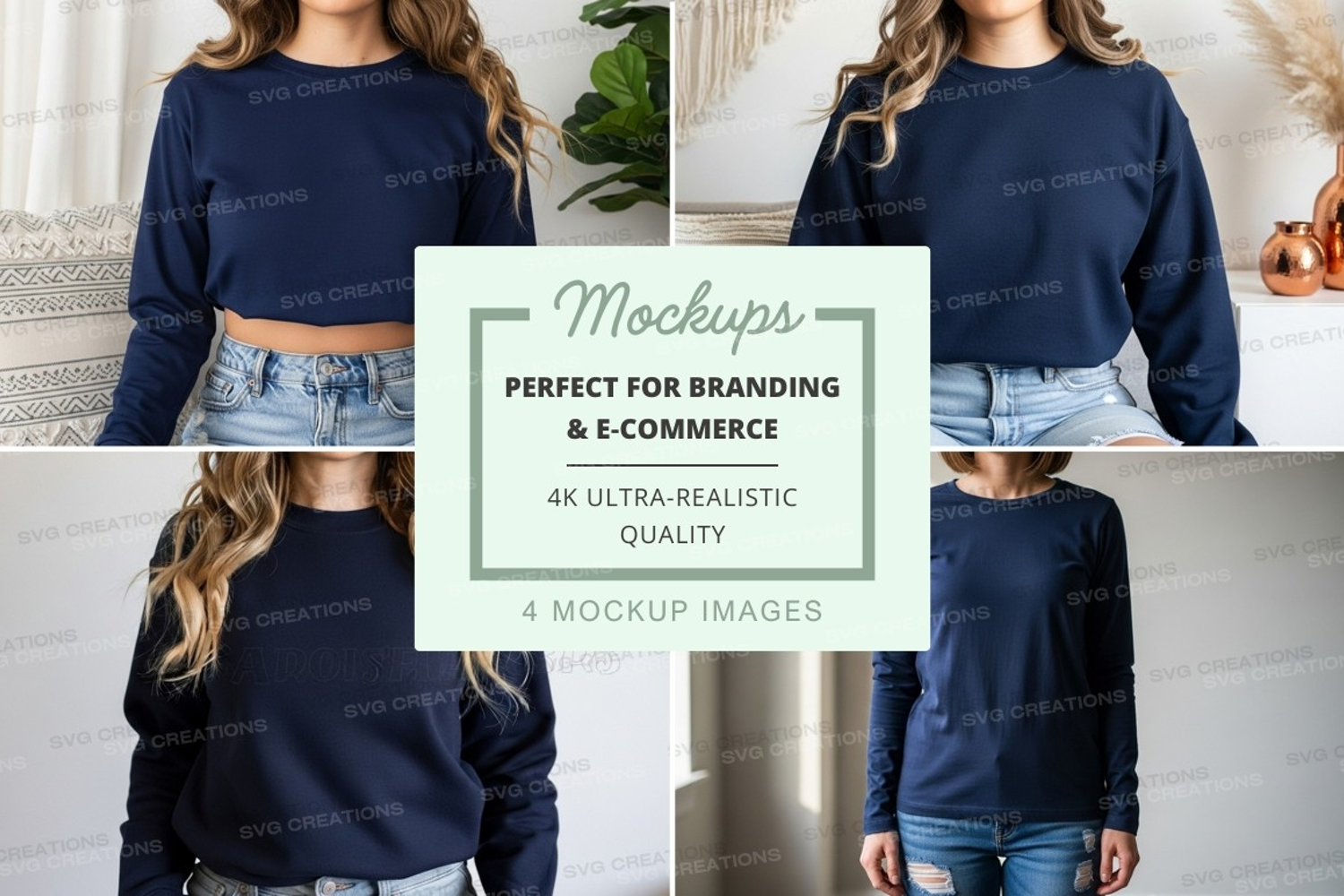 Similar Design Products to Long sleeve crop sweatshirt mockup in navy blue