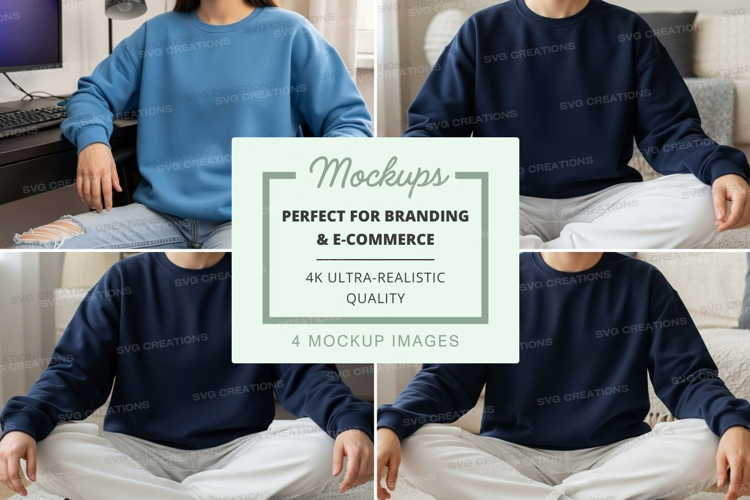 Mockup Light Blue Sweatshirt Dark Blue Individuals Staircase Casual Wear