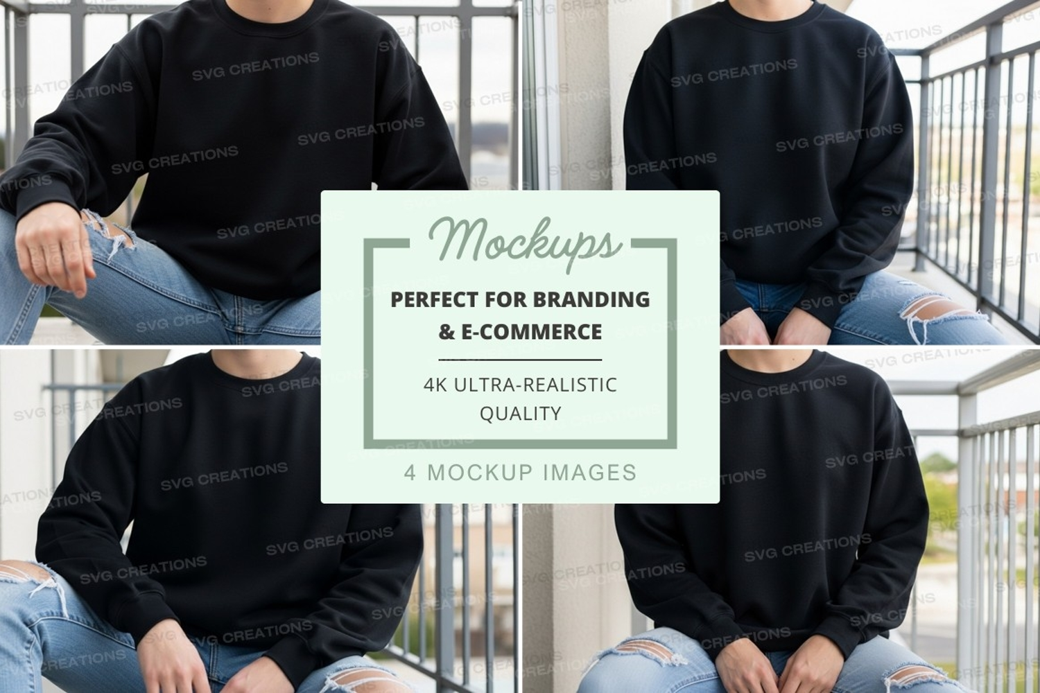 Black Mockup Outdoor Jeans Sweatshirt Balcony Crew Neck Casual Wear