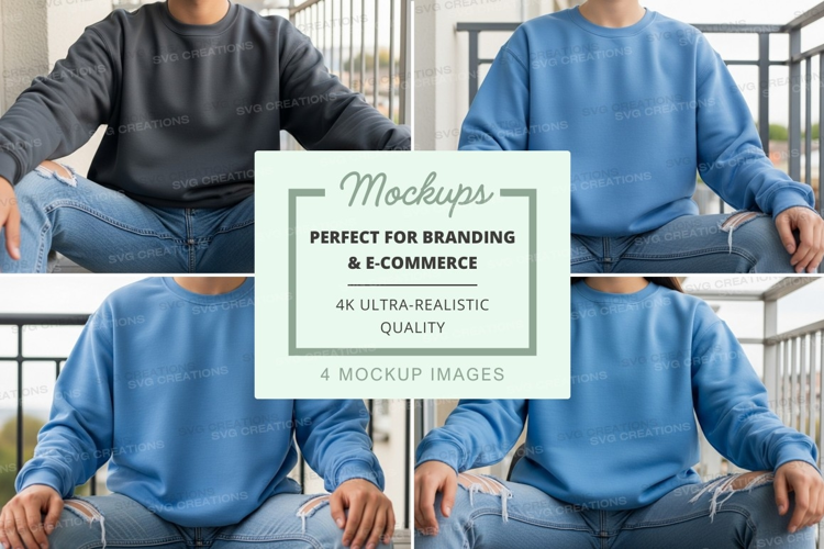 Sweatshirt mockup - crew neck, blue and black, front and bac