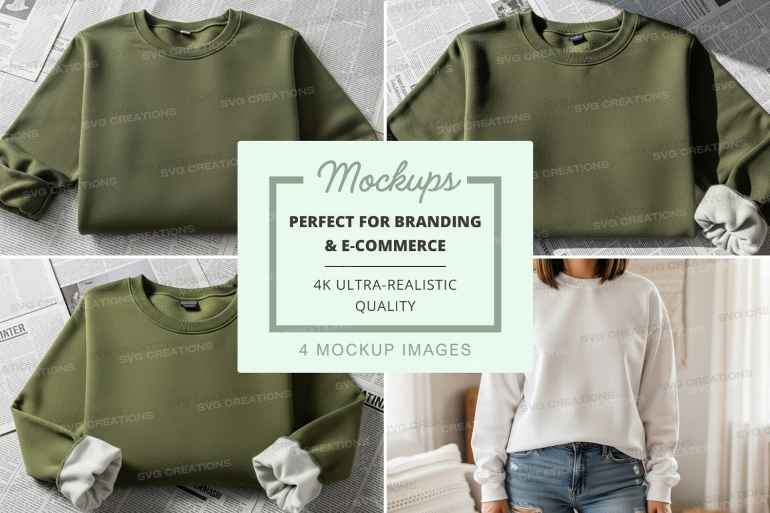 Mockup Apparel Sweatshirt Olive Green Crew Neck Cuffed Sleeves