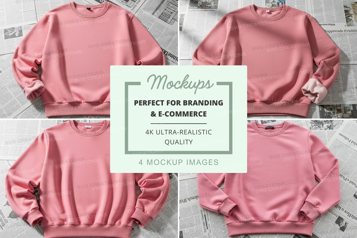 Pink Mockup Sweatshirt Cropped Newspaper Background Four Angles
