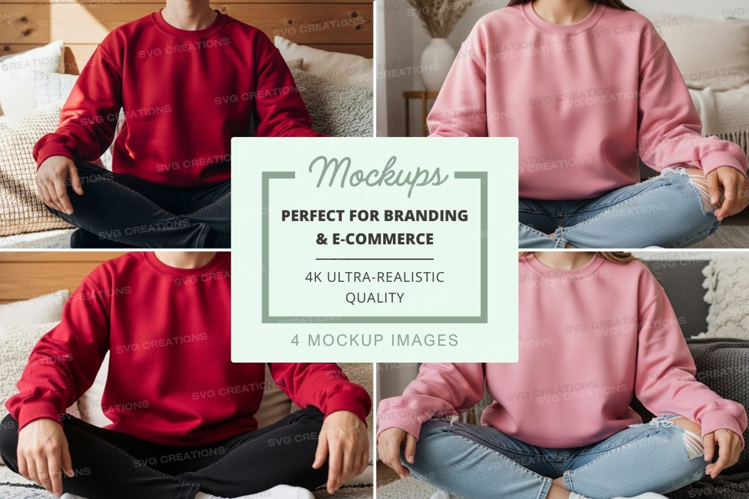 Four-person sweatshirt mockup in red and pink