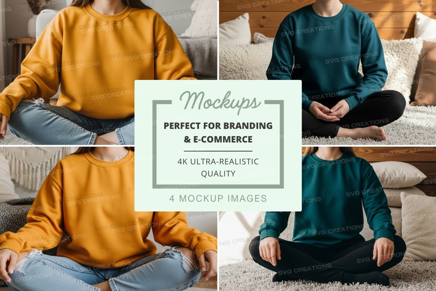 Mockup Yellow Teal Meditation Relaxation Indoor Couch Sweatshirt Crew Neck