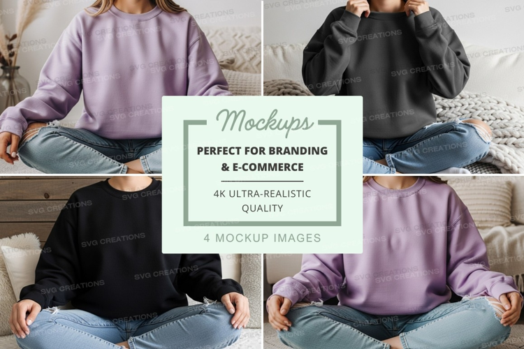 Black Mockup Lavender Model Sweatshirt Casual Wear Indoor Setting Relaxed Fit