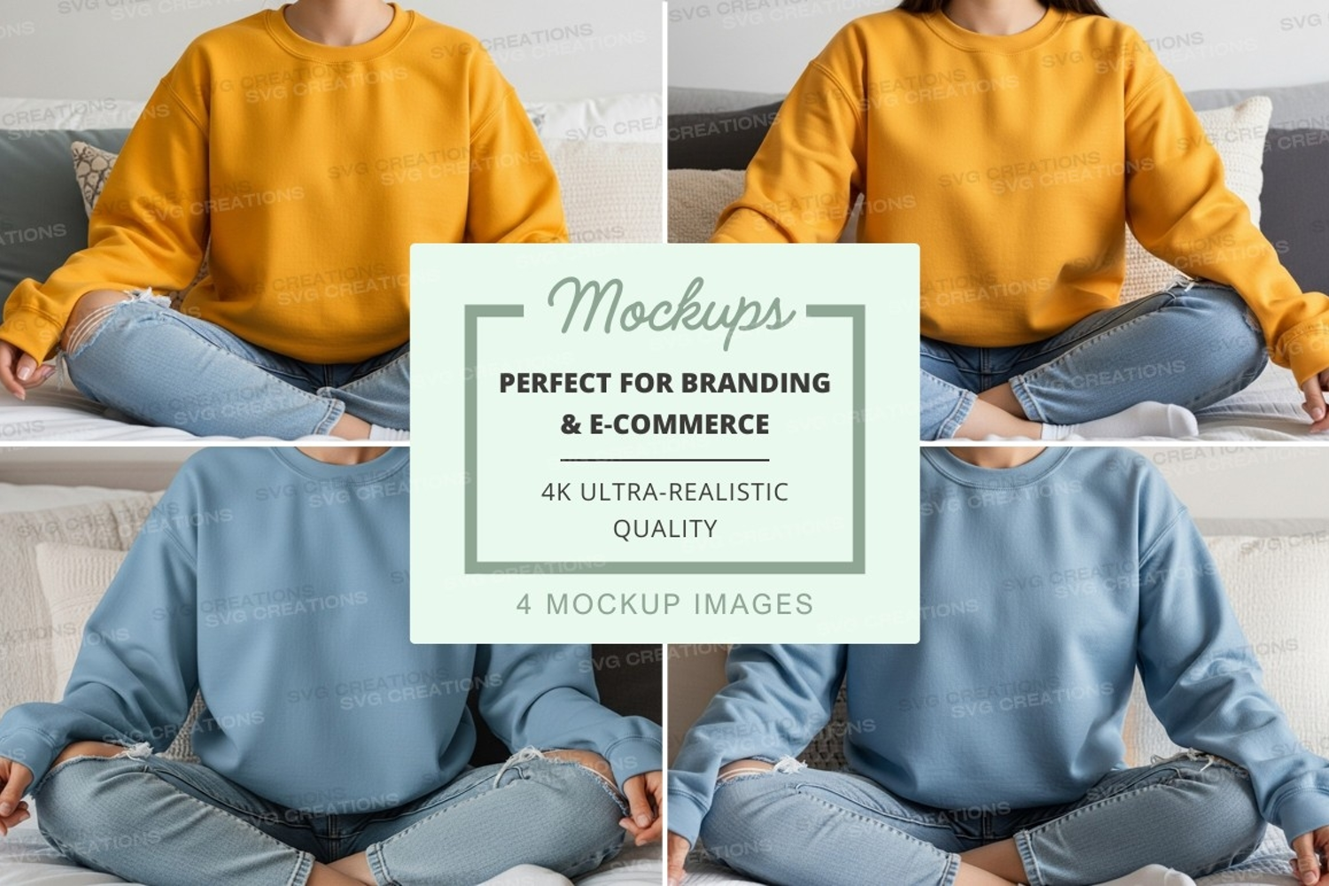 Sweatshirt mockup with person sitting in four different pose