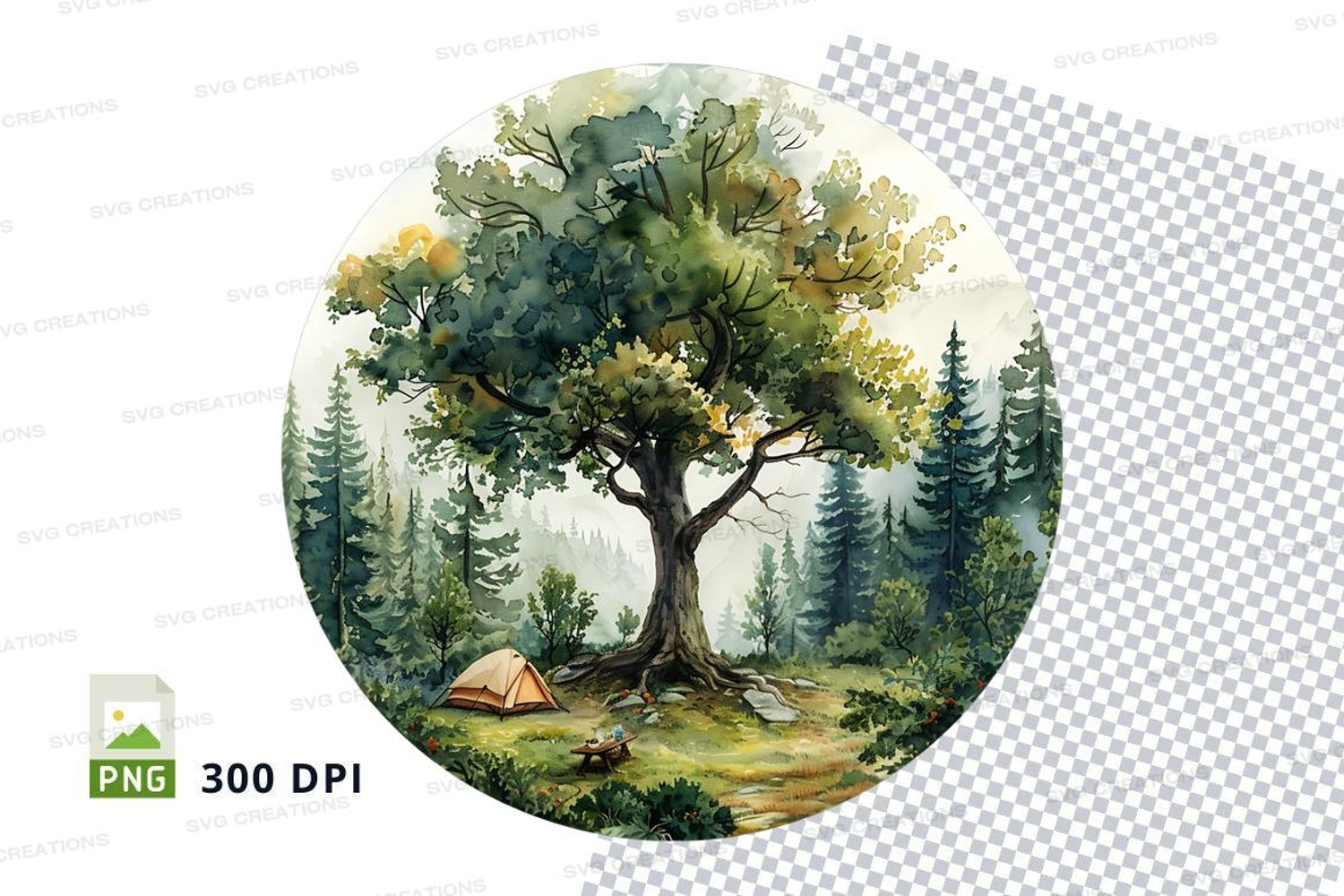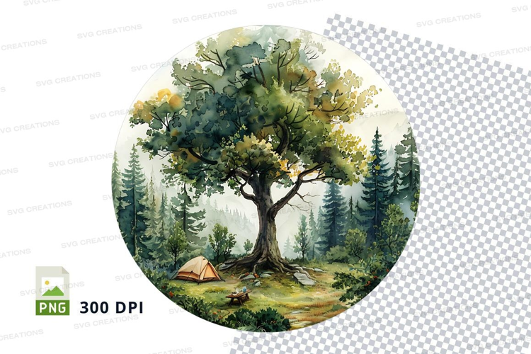 Watercolor Nature Tree Forest Clipart Camping Tent 300 Dpi