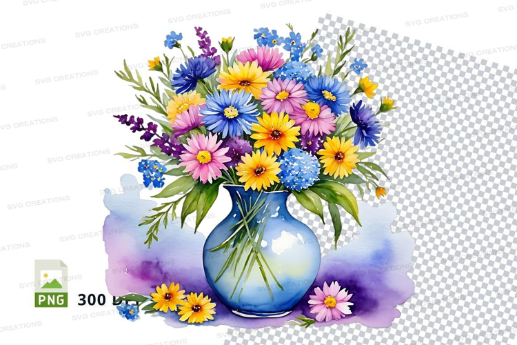 Similar Design Products to Floral bouquet in blue vase clipart png
