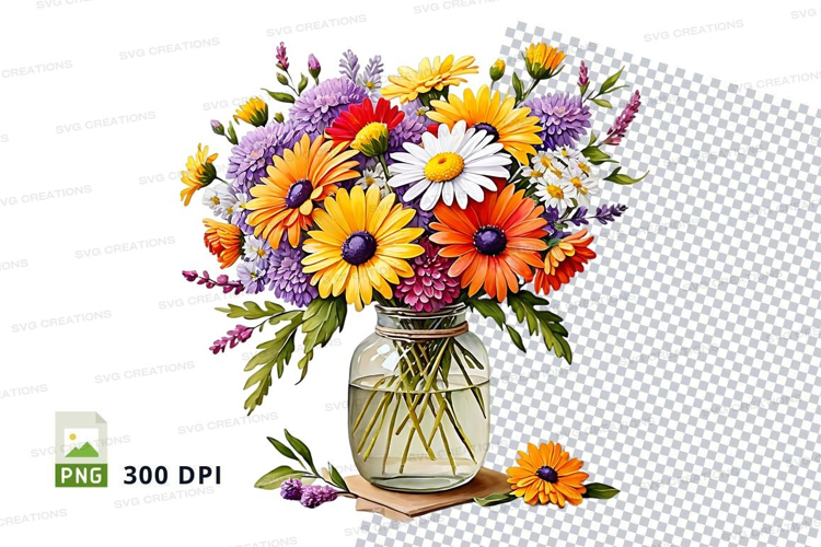 Clipart Png Mason Jar Daisies Flower Bouquet 300 Dpi Wildflowers Colorful Flowers Sunflowers
