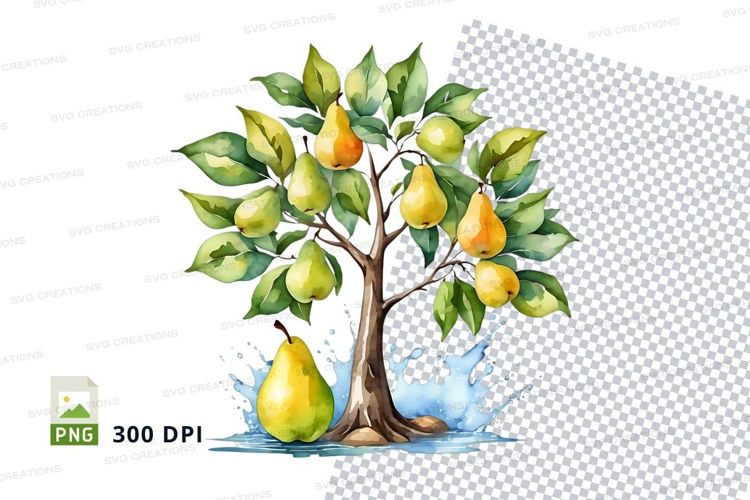 Watercolor pear tree illustration example image 1