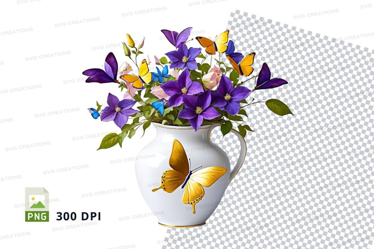 Similar Design Products to Vase with purple flowers and butterfly design mockup