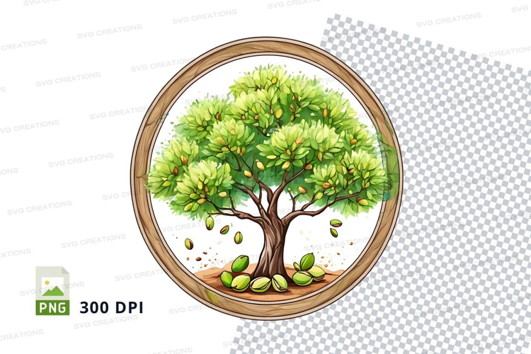 Similar Design Products to Watercolor tree illustration on round frame clipart png