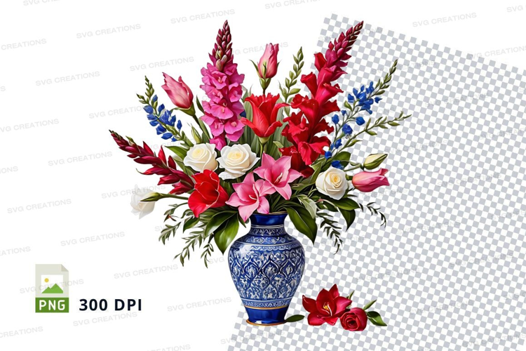 Pink Floral Flower Mockup Blue Bouquet White Red Vase Checkered Background