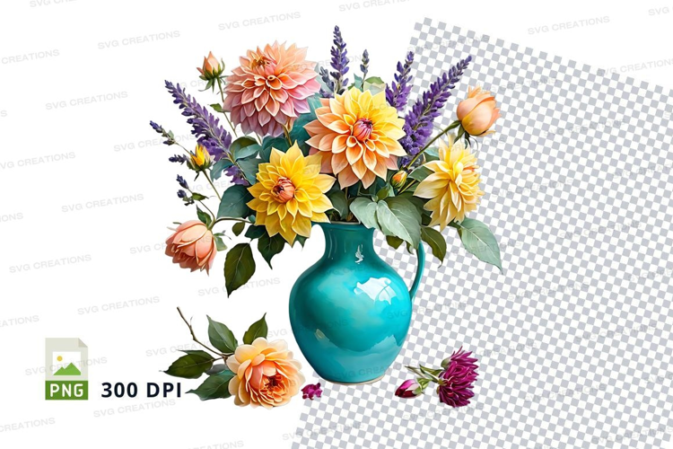 Floral bouquet in blue vase clipart png example image 1